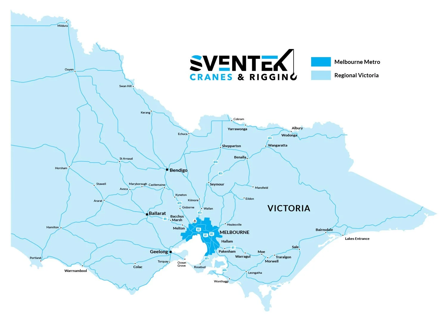 At Sventek Cranes we transport our own equipment, so wherever you are, we will get to you. From the Mornington Peninsula to Dandenong all the way to Geelong, we service Melbourne, Greater Melbourne and across Victoria. No job is too small or out of the way, we go everywhere!